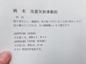 問診票と検査結果を踏まえた診断は、注意欠如多動症(ADHD)だった。