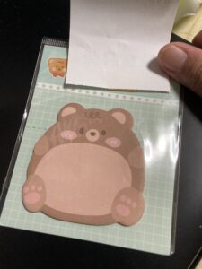 「ママにお土産があるんだ!」と言って渡してくれたのは、小さなクマの付箋メモ。